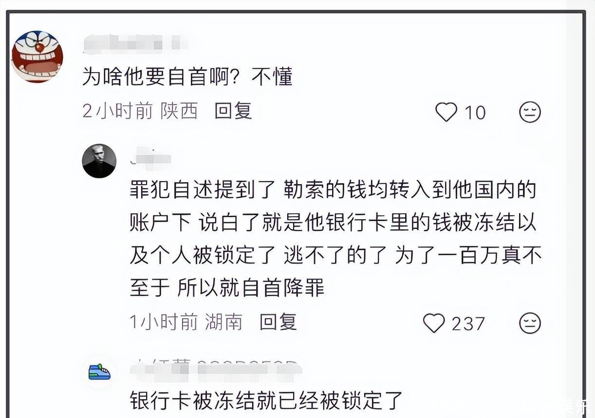 蓝战非不是上帝视角,他只能不断放低姿态配合绑匪。没想到绑匪一出声,舆论就反转了。不过好在大部分的网友还是理智的,也扒出了他自首的原因。绑匪称勒索的钱已经转入了他国内的账户名下,其实就是卡里的钱被冻结,个人也被锁定了,根本逃不了。事情闹大了,各大机构都要撇清关系,介入的越来越多,绑匪在劫难逃,只能自首求饶。